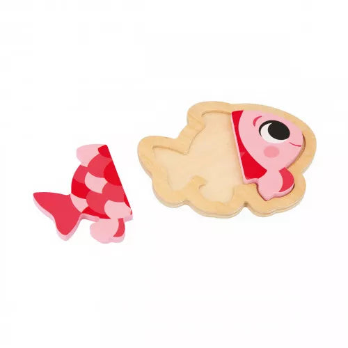 Dès 18 mois, les enfants peuvent commencer à s'initier aux joies des puzzles ! Ils sont parfaits pour développer la motricité fine et la coordination ! Avec ce lot de 4 puzzles évolutifs premier âge, les petits fans de nos animaux de compagnie tout mignons vont être comblés ! Ce set de puzzles en bois, présenté dans une jolie boite cadeau contient 4 puzzles allant de 2 à 5 pièces pour que les enfants puissent s'amuser et progresser à leur rythme. On retrouve les animaux favoris des tout-petits : un poisson de 2 pièces, un chien de 3 pièces, un perroquet de 4 pièces et un chat de 5 pièces. Les pièces à replacer dans le bon ordre sur un support en bois sont suffisamment grosses pour que bébé puisse bien les prendre en main. L'assemblage de ce jeu d'éveil sera un vrai plaisir ! Avec ce jouet, vous pourrez également initier l’apprentissage des premiers chiffres. Puzzles en bois FSC®.
