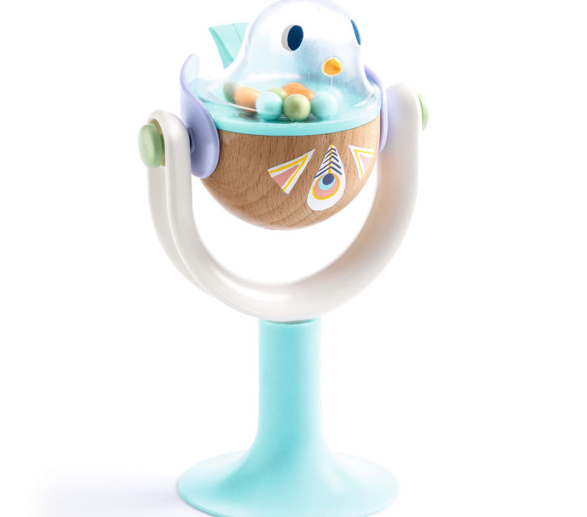 Un hochet-culbuto en forme d’oiseau, en bois naturel et aux couleurs pastel, destiné aux bébés dès 3 mois. En tournant sur lui-même, l’oiseau fait retentir le bruit des billes, et l’enfant observe par transparence les billes qui bougent. Renversé, le jouet se redresse toujours. L’enfant pourra s’amuser à faire tourner l’oiseau sans le faire tomber grâce à la ventouse qui se colle facilement sur les surfaces lisses.