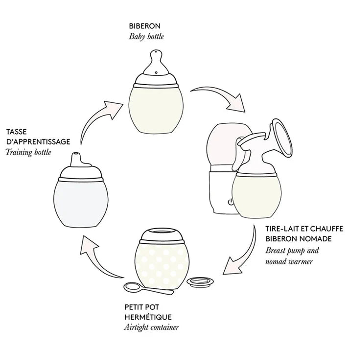 Le biberon Élhée peut se transformer en petit contenant hermétique grâce à l’opercule fourni avec le biberon. Idéal pour conserver le lait maternel ou les purées/compotes. On peut également le transformer en gourde en remplaçant la tétine par un bec de succion anti-fuite.