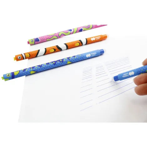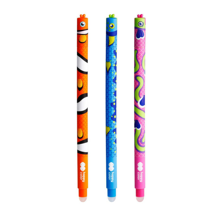 Plongez dans l’univers coloré et rigolo des profondeurs marines avec la collection Funny Sea de Happy Color ! Ces stylos effaçables ultra fun sont décorés comme de véritables créatures aquatiques : écailles, nageoires, tentacules… jusqu’au capuchon en forme de poisson farceur !