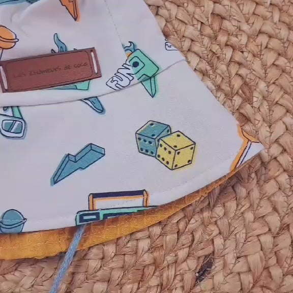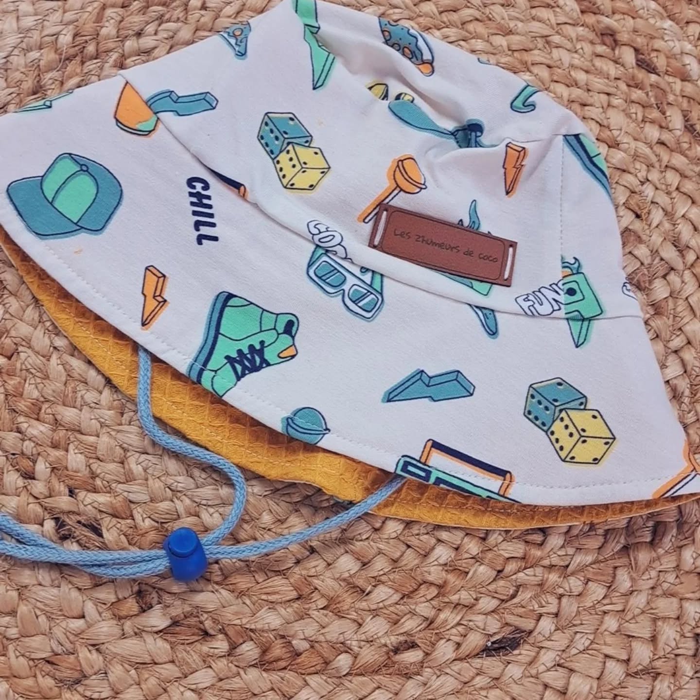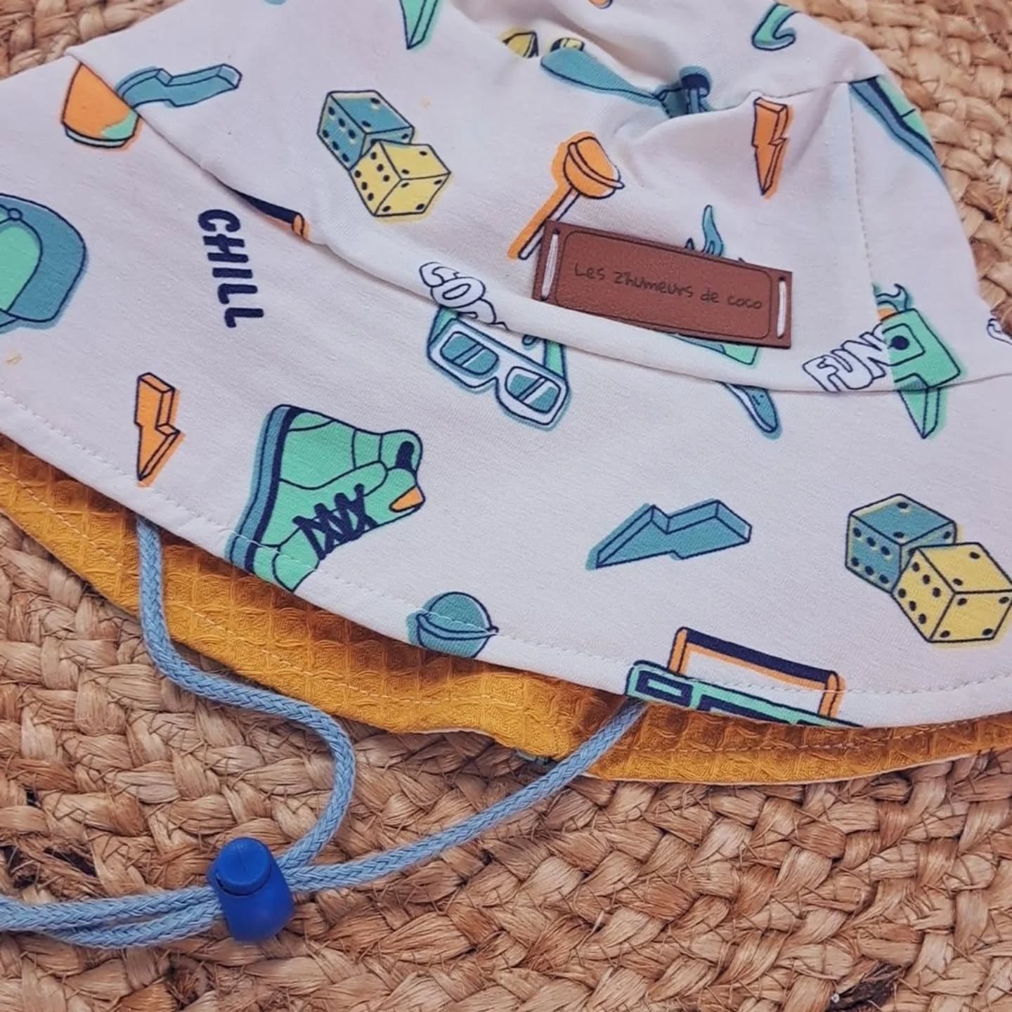 Ce bob, cousu main avec soin, est l’accessoire idéal pour protéger bébé du soleil tout en restant stylé. Léger et confortable, il est fabriqué avec des matières douces et respirantes, parfaites pour les petites têtes. Chaque bob est confectionné artisanalement dans notre atelier en Belgique, garantissant une qualité et un savoir-faire uniques.