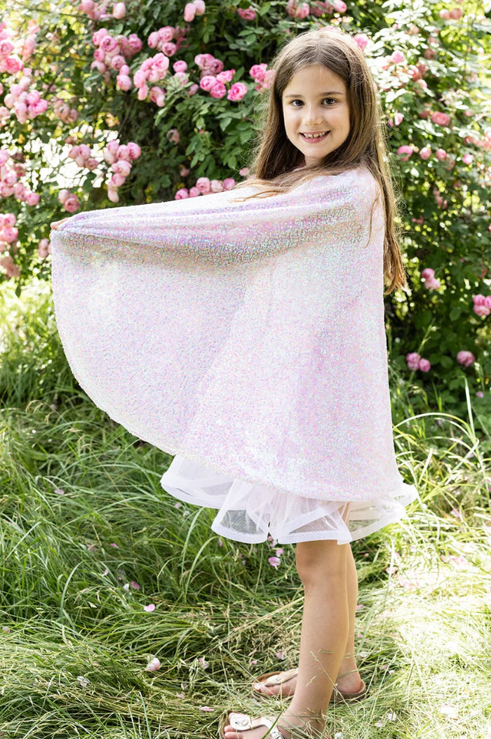 Ajoutez une touche de magie avec la cape Pink Sequins Twirl ! Dotée d’une coupe unique à l’ouverture, cette cape scintillante se drape magnifiquement sur les épaules de votre enfant. Parfait pour le jeu ou les événements spéciaux, c’est l’accessoire ultime pour virevolter avec style !