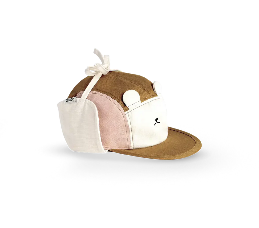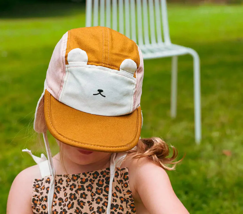 Avec ses oreilles d’ourson,ses bords rabattableset son adorable museau brodé,la Camper Cap Ourson Rose et Brun protège vos petits de 0 à 6 ans tout en leur offrant un style unique. Fabriquée en 100% coton recyclé certifié GRS, elle assure une protection UPF50+ naturelle et s’adapte parfaitement aux journées en extérieur.