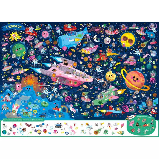 Les robots, au fond de la mer, la forêt enchantée... Découvre 9 univers détaillés avec du phospho, et 50 éléments à retrouver sur chaque page, dont 10 personnages récurrents.