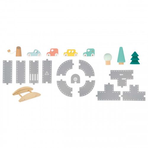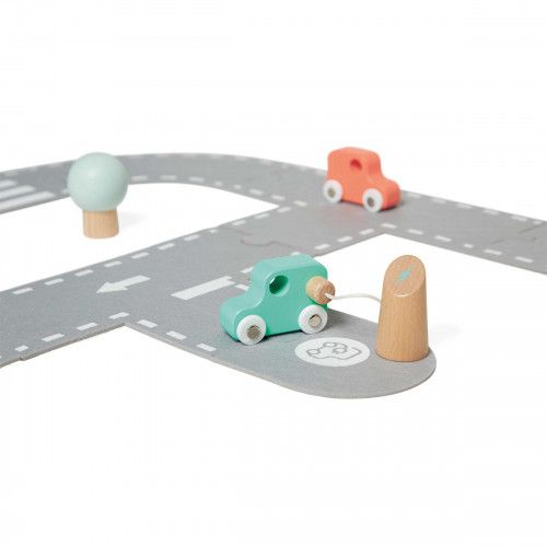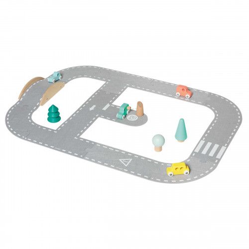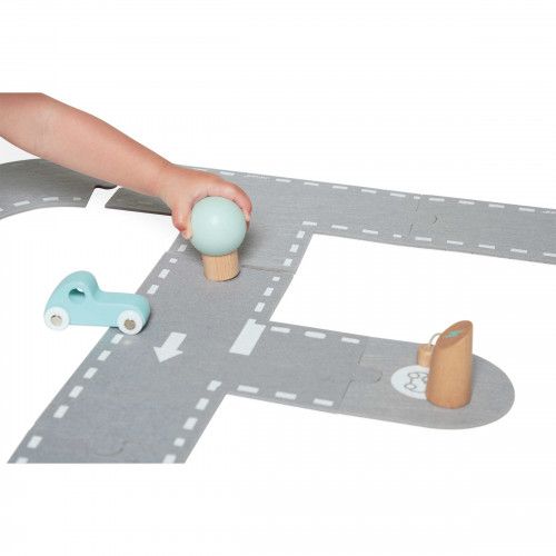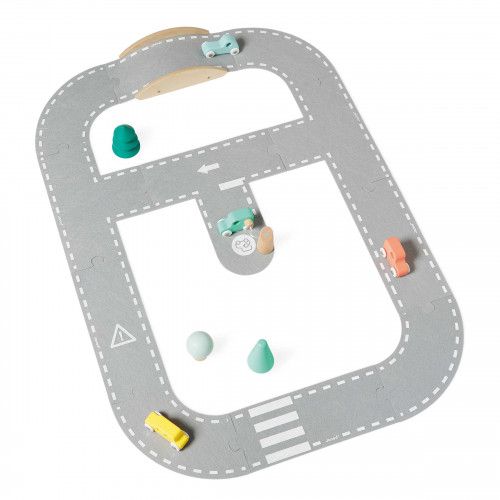 Voici un circuit pour voitures d'un tout nouveau genre ! On adore les 12 pièces constituant la route en feutrine ! Facile à monter par un enfant dès 2 ans, ce circuit est plein de surprises : outre la douceur et la légèreté des pièces en tissu, on retrouve un élément surélevé représentant un pont, un véhicule 'électrique' qui se branche à la borne grâce à un aimant et de jolis arbres en bois pour décorer cette belle piste pour voitures. Pour s'amuser encore et encore, plusieurs circuits sont réalisables ! Attention à bien faire respecter le code de la route aux 4 véhicules colorés de notre circuit ! Ce jeu stimulera la dextérité de votre enfant et favorisera son imagination et sa créativité. Ce jouet d’éveil en feutrine et en bois FSC® fait partie de la collection Bolid.