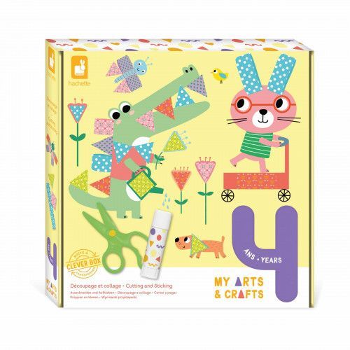 Découper et coller, c'est super amusant et ça fait travailler la motricité fine des enfants dès 4 ans ! Dans ce coffret créatif, il y a tout le nécessaire pour réaliser 4 tableaux à décorer avec du papier à motifs que les petits devront couper puis coller au bon endroit ! Malin la Clever Box, la boite se transforme en chevalet pour exposer les belles créations. Une paire de ciseaux adaptée aux petits (elle ne coupe que le papier) et de 5 feuilles de papier à motifs permettent aux mini artistes de laisser parler leur créativité. Cette activité est très facile : il suffit de découper les formes pré-dessinées des feuilles de papier et de les disposer au bon endroit à l'aide du bâton de colle fourni. Les enfants pourront suivre le livret d'instructions inclus. Il faut environ 1h30 pour finaliser les 4 tableaux. Ce coffret créatif fait partie de la gamme My Arts & Crafts qui présente des animaux tout mignons aux couleurs pastel et qui propose aux plus petits leurs premières activités de création.