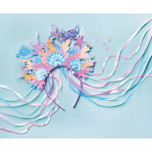 Prêts pour le couronnement du souverain(e) du royaume sous-marin ? Avec ce kit créatif pour les enfants à partir de 7 ans, l'immersion dans l'univers des sirènes est imminente ! Pour compléter un déguisement ou s'imaginer en sirène fabuleuse, ce coffret créatif permet de réaliser un diadème magistral. Voilà une activité manuelle qui permet aux enfants de développer leur dextérité et leur sens artistique, tout en stimulant leur imagination ! L'une des particularités de cette parure de cheveux de sirène, ce sont les rubans de satin de différentes couleurs ainsi que le ruban de sequins nacrés : ils donnent l'illusion d'une chevelure flamboyante et virevoltent à l'infini. Et comme toute princesse sirène a la responsabilité de veiller à l'équilibre du monde sous-marin, la coiffe est composée de coquillages, de coraux et de créatures marines étincelantes. Ce kit de loisir créatif contient : 1 serre-tête en satin violet, 5 planches imprimées et prédécoupées, 3 rubans de satin (violet, rose, bleu), 1 ruban de sequins nacrés, 1 planche prédécoupée holographique, 1 planche prédécoupée pailletée violette, 4 demi-perles nacrées autocollantes et 1 tube de colle. Un livret avec instructions et modèles est également inclus, pour une activité créative dans le calme et en toute autonomie. Il faudra compter environ 1h30 pour réaliser ce diadème sirène. Plongez dans l'univers de la collection "Magic Ocean", des kits de loisirs créatifs pour enfant sur le thème des profondeurs marines, pour des après-midis créatifs bercés par le son des vagues !