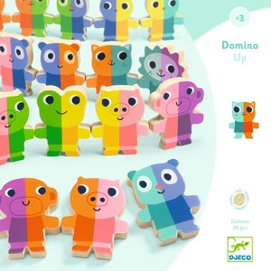 Un jeu de dominos en forme d'animaux colorés dès 3 ans. L'enfant associe les dominos en bois en suivant les couleurs pour former une suite colorée.