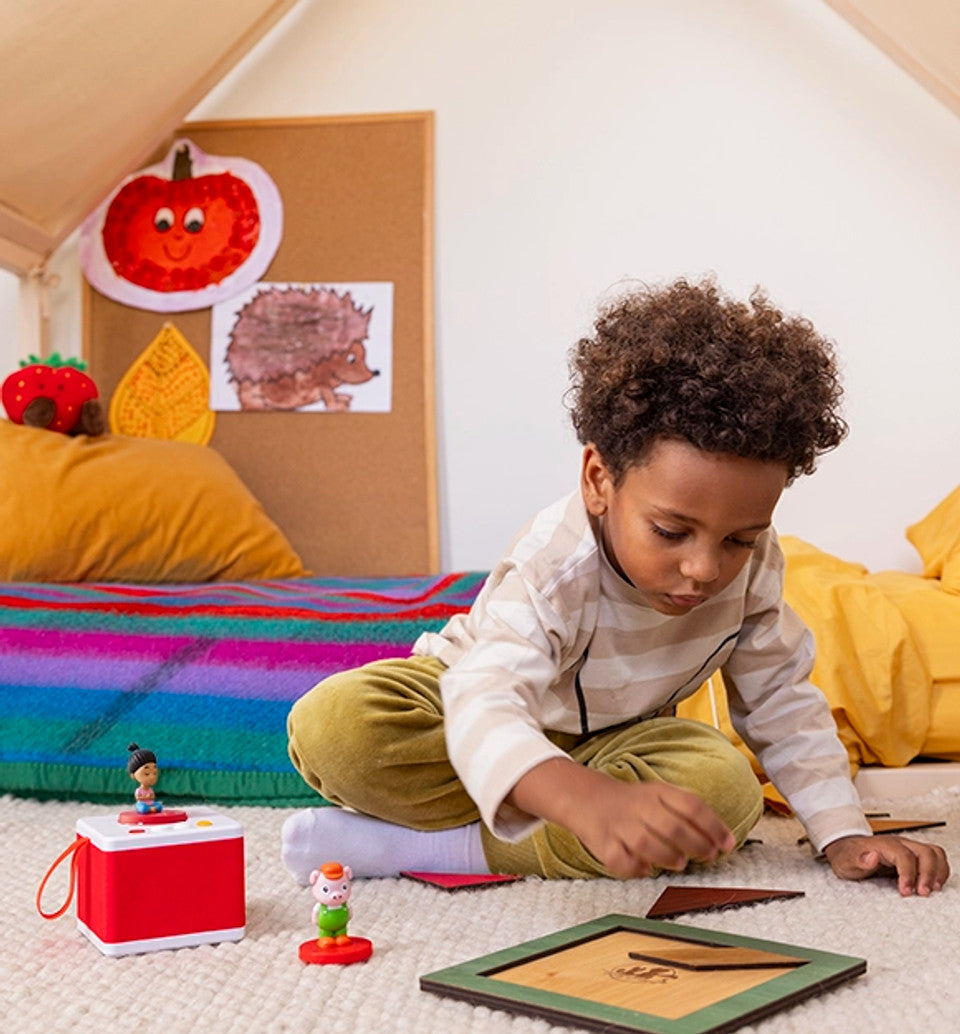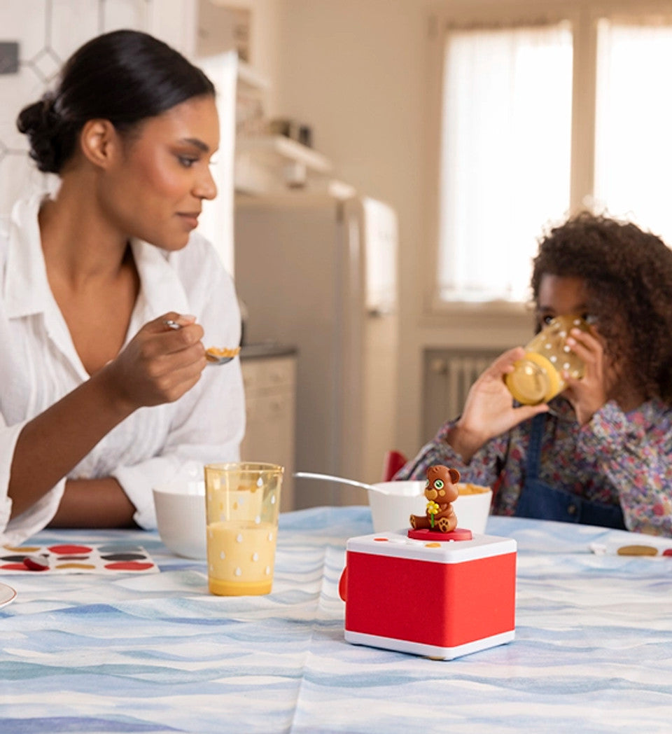 Le Starter set contient l'enceinte Bluetooth® avec limiteur de volume à 85 dB, le Personnage Sonore Ele l'Éléphant avec les chansons préférées des enfants, le câble micro USB pour connecter l'enceinte à l'ordinateur et la charger ou mettre à jour les contenus avec les applis MyFaba. Pour écouter un contenu audio, il vous suffira de placer le Personnage Sonore au-dessus de l'enceinte. FABA Conteur d'histoires est conçu pour les enfants à partir de 3 ans ; les enfants en dessous de cet âge doivent l'utiliser sous la supervision d'un adulte.