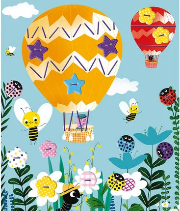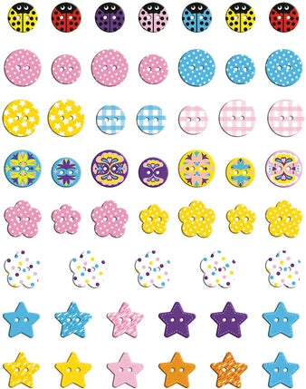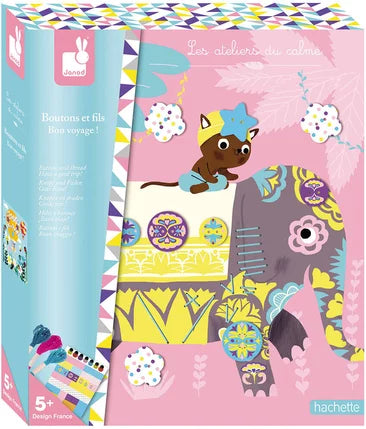 Une activité très décorative qui enseigne les bases de la couture. Contenu : 4 tableaux à décorer avec 50 boutons en carton, 4 fils à broder, 1 aiguille en plastique et 1 enfile-aiguille.
