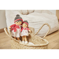 Quelle romantique ! Faites la connaissance d’Émilie, une charmante poupée en tissu, dans son format 25 cm. Adaptée à bébé dès la naissance, elle fait partie de la collection de poupées Tendresse de Kaloo. La poupée Émilie porte une belle jupe à volants ornée de cœurs, reflétant sa joie de vivre et son amour pour la vie. Avec son adorable cache cœur rouge, assorti à son bandeau, elle est prête pour toutes les aventures. À ses pieds, des baskets confortables lui permettent d’arpenter les rues et d’en apprécier la beauté authentique. Émilie est une petite poupée qui incarne la liberté et qui aime célébrer la beauté de la vie. D’une grande douceur, elle est parfaite à câliner et à saisir par les plus petits. On craque tous pour son petit chignon soigné et son élégant ruban autour du cou ! À emporter partout pour vivre les plus douces histoires, c’est une amie toujours prête à saisir chaque instant. Au dos de cette poupée brune, vous trouverez un ruban cousu qui permet d’inscrire le prénom son petit propriétaire. Présentée dans sa jolie boite, Émilie est un cadeau de naissance original et empreint de tendresse. Elle est aussi parfaite comme première poupée pour stimuler l’imagination des petits. Le micro-velours et le rembourrage qui la compose sont à base de polyester recyclé, pour une composition à 87% en matières recyclées. Lavable en machine, cette adorable petite poupée est prête à être adoptée !