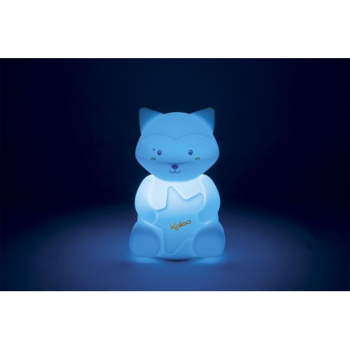 La veilleuse souple Kaloo en forme de raton laveur crée une atmosphère douce et une ambiance agréable pour apaiser bébé avant de s'endormir. Elle s'illumine de 3 couleurs différentes (bleu, blanc, rose) par simple pression sur la tête du raton laveur. Rechargeable via câble USB (câble inclus), vous pouvez l'emporter partout. La veilleuse LED en silicone extra souple et doux est moins fragile que d'autres lampes de chevet. - Veilleuse extra souple - 3 couleurs (bleu, blanc, rose) - Bouton ON/OFF - Temps de charge : 2h - Autonomie : 6h