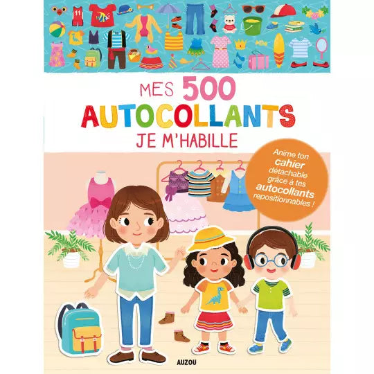 Un cahier d’autocollants sur le thème de la mode et des vêtements ! Il propose plus de 500 autocollants repositionnables et un cahier de décors détachable à animer.