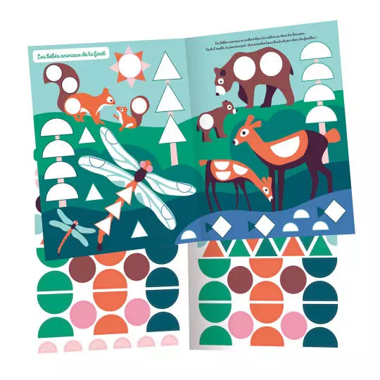 Un cahier de plus de 1000 gommettes de formes géométriques à replacer dans un cahier de décors détachables. Une activité parfaite pour favoriser léveil et la motricité des tout-petits ! En plus, deux pages de gommettes bébés animaux à coller partout ! Décors : bébés animaux de la ferme bébés animaux de la jungle bébés animaux de la forêt bébés animaux de la nuit bébés animaux du monde magique