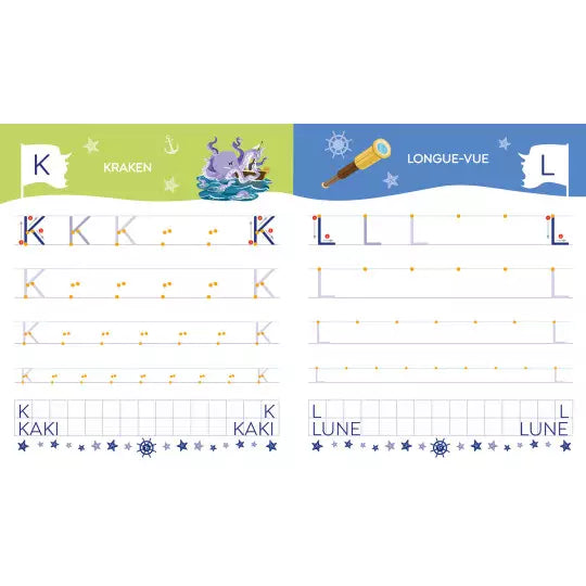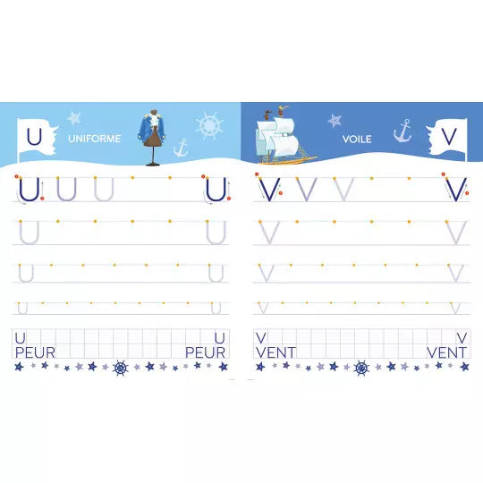 Ce cahier permet de s’entraîner à écrire : — toutes les lettres de l'alphabet en attaché — des mots (son prénom, du vocabulaire...) — les chiffres de 1 à 10