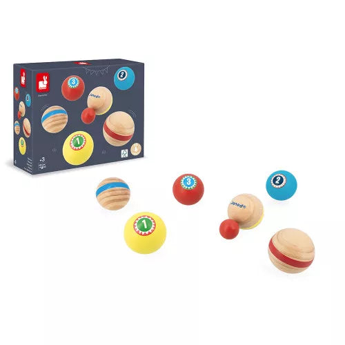 Tu tires ou tu pointes ? Avec notre jeu de pétanque en bois, les enfants dès 3 ans se lancent dans une compétition amicale, transformant leur jardin ou leur salon en un véritable boulodrome. Ce jeu de lancer est un défi amusant qui stimule l’adresse et la coordination main-œil des petits boulistes, tout en leur offrant des heures de plaisir et de challenge à plusieurs. Ce jeu d’adresse contient : 6 boules de pétanque en bois, 1 cochonnet et 1 sac en coton pour transporter facilement le tout. Emportez ce jeu de plein air lors de vos prochaines vacances ou pour une sortie au parc ! Il peut être joué par 2 joueurs ou plus, ce qui en fait le choix parfait pour les fêtes d’anniversaire ou les réunions de famille. Grâce à ce jeu de pétanque en bois, les enfants peuvent s’imaginer en plein cœur d’un tournoi de pétanque sous le soleil du sud de la France, chaque lancer de boule devenant un moment de suspense et d’excitation. Vos enfants pourront alors faire comme les grands avec des boules adaptées pour leur sécurité. Arriverez-vous à faire un meilleur score que vos enfants ? On craque pour les couleurs pétillantes mêlées au bois naturel de ce jeu d'extérieur, son style intemporel invite au retour à l'enfance. Ce jeu de pétanque en bois appartient à la gamme APPLEPOP, une collection de jeux funs et décalés inspirée de la fête foraine. Le bois de ce jeu d’adresse est certifié FSC™.