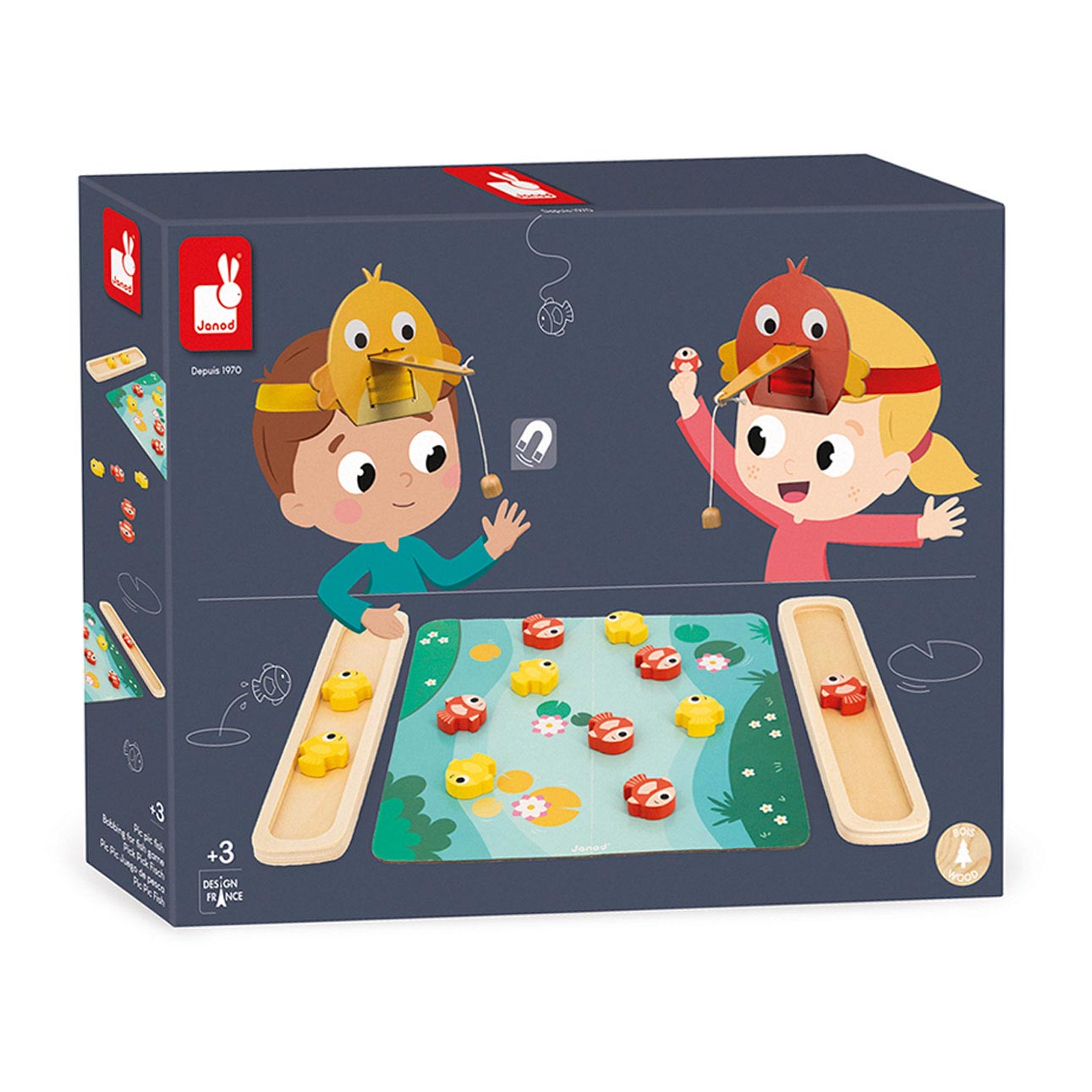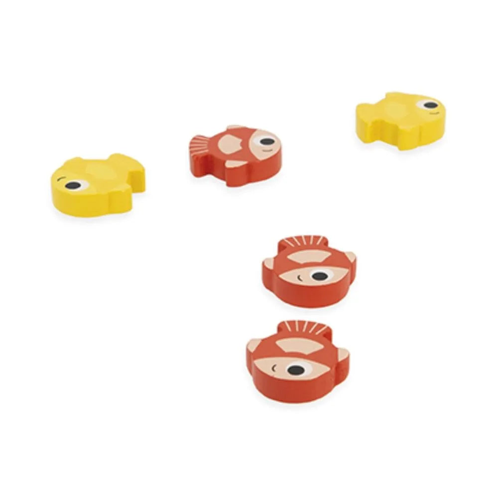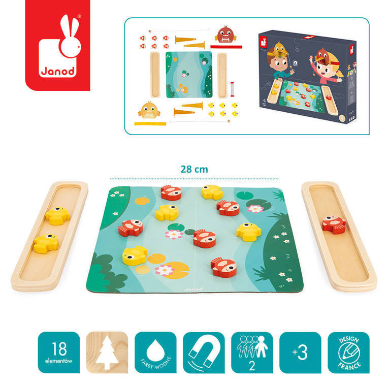 CARACTÉRISTIQUES : Contient 2 oiseaux, 12 poissons, un plateau, 2 cases, un sablier. Matériau(x) utilisé(s) : Bois (Contreplaqué et Schima), Carton. Tranche d'âge recommandée : de 3 ans à 10 ans.