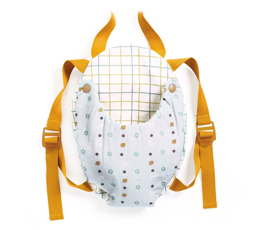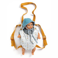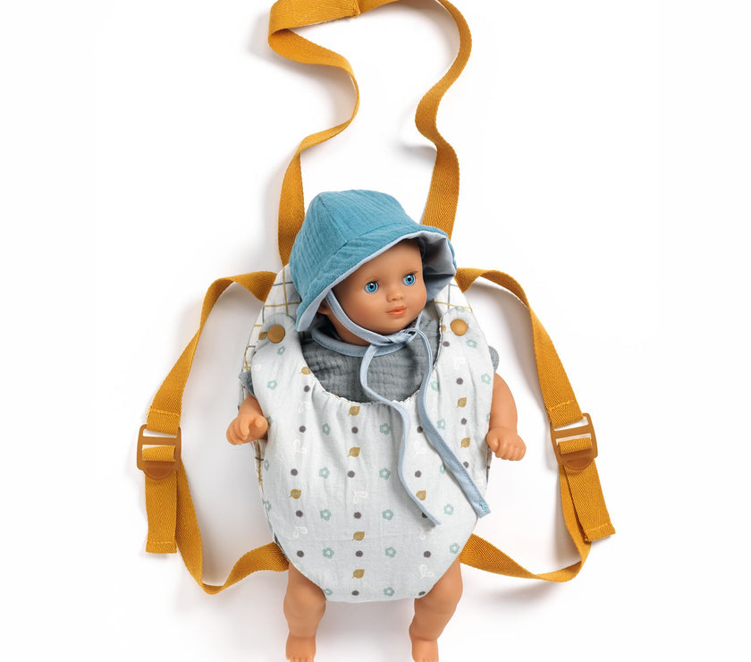 Pour toujours garder son bébé près de soi, voici le porte-bébé Blue Gray aux couleurs automnales. Très pratique à utiliser, l'enfant le pose en position ouverte et place sa poupée soigneusement. Une fois refermé à l'aide des pressions, il s'utilise autour du cou ou sur les épaules (bretelles réglables). Un accessoire indispensable pour promener sa poupée !