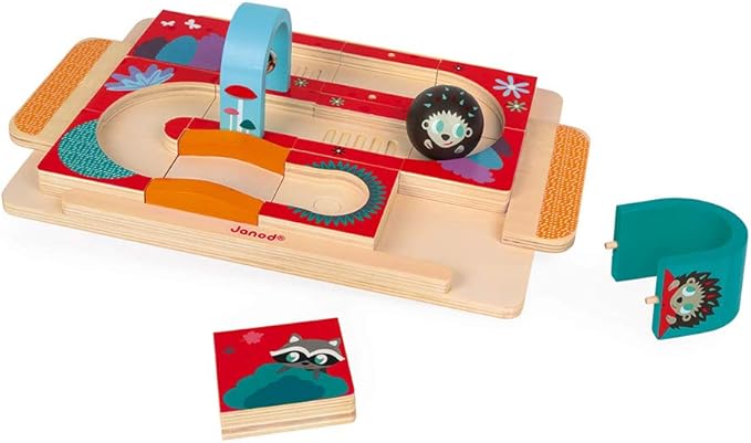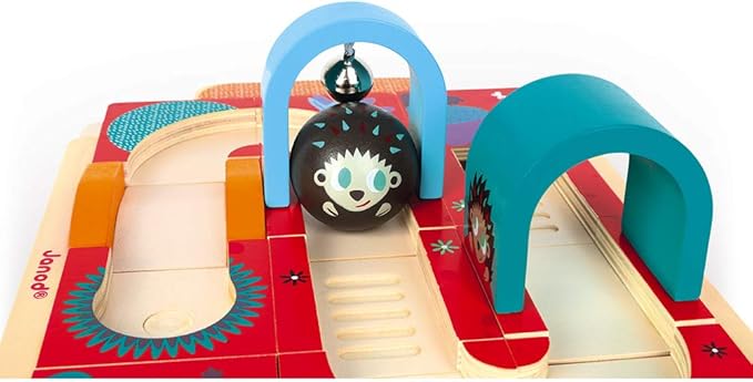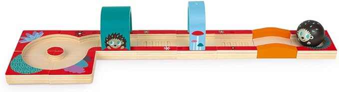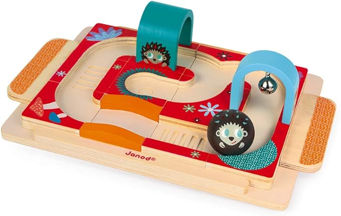 Jeu de parcours à composer soi-même grâce à un plateau mobile et 14 pièces de circuit. Une fois les pièces en place, l'enfant doit faire défiler la balle sur le circuit à l'aide des poignées. Les pièces étant amovibles, l'enfant peut également jouer en dehors du plateau et créer de nombreux circuits. En s'amusant, il développe la coordination main/œil et la motricité fine grâce à la grosse balle en forme de hérisson à déplacer sur le chemin.