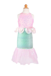 Mais la magie ne s’arrête pas là : la jupe de style sirène en tulle délicat complète le look, permettant à votre petit de glisser gracieusement à travers des vagues imaginaires. À chaque tour, la robe prend vie, transportant votre enfant dans un monde de merveilles aquatiques.