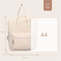Cet adorable sac à dos Kidzroom de la collection Soft Whispers est entièrement fabriqué en tissu nounours ! Le sac est de couleur beige et dispose d'un compartiment principal spacieux qui se ferme à l'aide d'une fermeture éclair. Le sac dispose également d'une poche frontale. En haut du sac à dos se trouvent deux poignées pratiques, qui permettent de porter le sac à la main. De plus, les bretelles sont réglables et peuvent être adaptées à chacun.