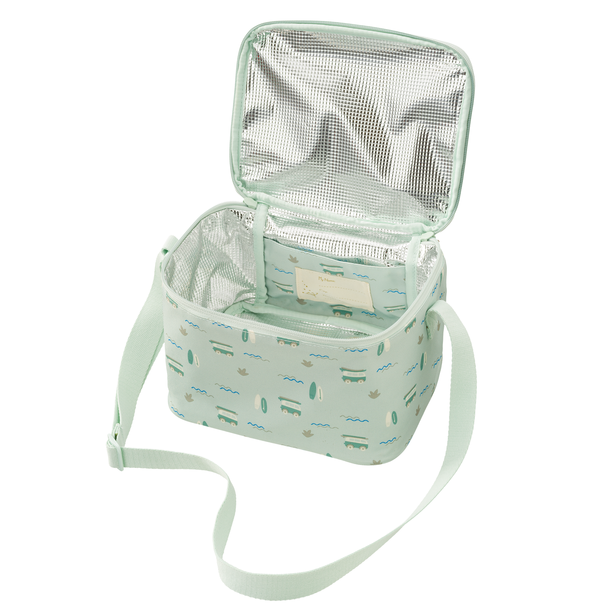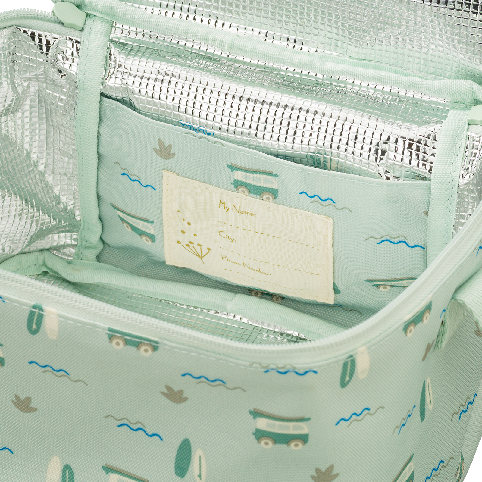 Le sac à lunch idéal. Que se soit pour aller à l’école, en stage ou même en pique-nique. Grâce à sa grande contenance , vous pourrez y glisser facilement une boîte à tartine, à lunch et une gourde. Il se ferme avec une double fermeture éclaire. Muni d’une grande anse pour pouvoir le porter à l’épaule, il a également une petite poignée. Vous trouverez à l’ intérieur une étiquette pour pouvoir y inscrire le prénom de votre enfant.