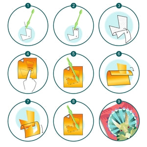 4 tableaux à décorer avec des feuilles métallisées. Grâce au code couleurs indiqué sur les planches, l'enfant repère les zones à métalliser. À l'aide de l'outil, il ôte la pellicule protégeant la surface encollée puis y dépose la feuille métallisée. La matière se dépose comme par magie et les tableaux s’illuminent.
